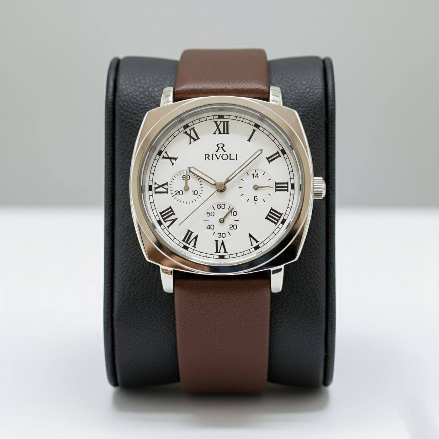 Classic Brown & Silver: Professional White dial with Roman numerals, paired with a premium Brown magnetic strap.